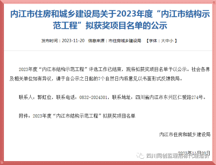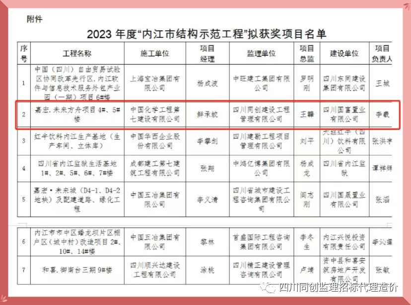 近日,內(nèi)江市住房和城鄉(xiāng)建設(shè)局公布了2023年度內(nèi)江市“結(jié)構(gòu)示范工程”獲獎工程名單,四川同創(chuàng)建設(shè)工程管理有限公司監(jiān)理的“嘉宏.未來方舟項目4#、5#樓”項目榜上有名,這一榮譽(yù)不僅是對項目團(tuán)隊辛勤付出的肯定,也是對四川同創(chuàng)建管監(jiān)理工作的高度認(rèn)可。