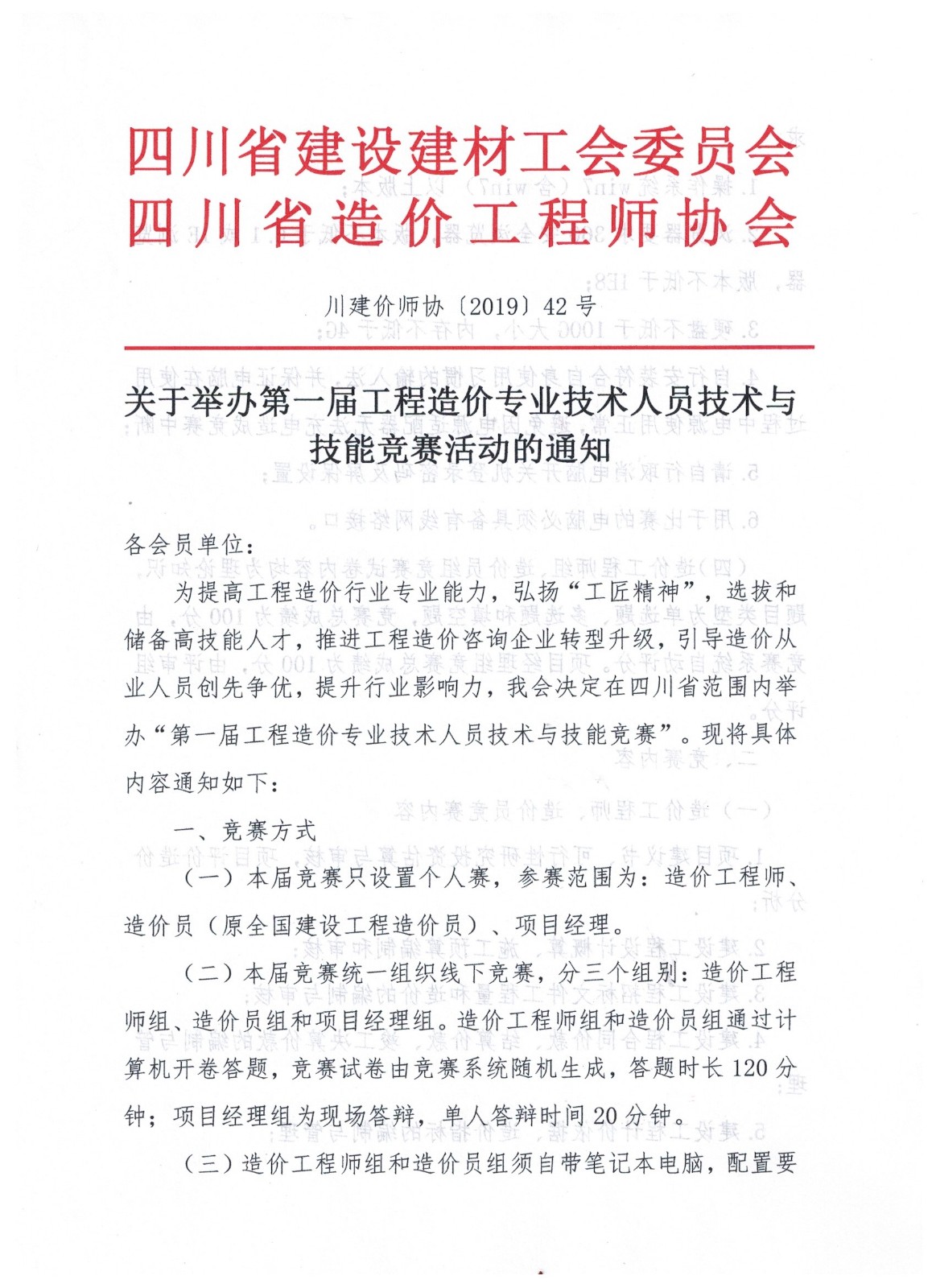 關(guān)于舉辦第一屆工程造價專業(yè)技術(shù)人員技術(shù)與技能競賽活動的通知